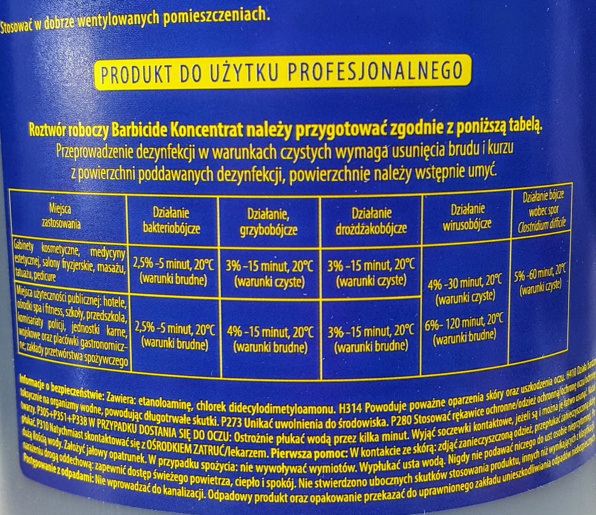 | Stężenie preparatu | KONCENTRAT - wymaga rozcieńczenia |