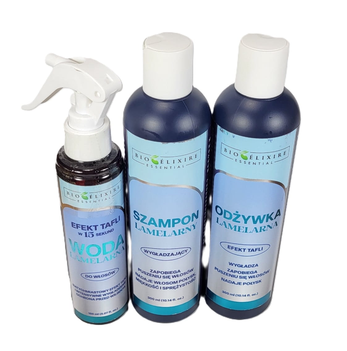 Bioelixire essential ZESTAW LAMELARNY Woda 150ml Szampon 300ml Odżywka 300ml