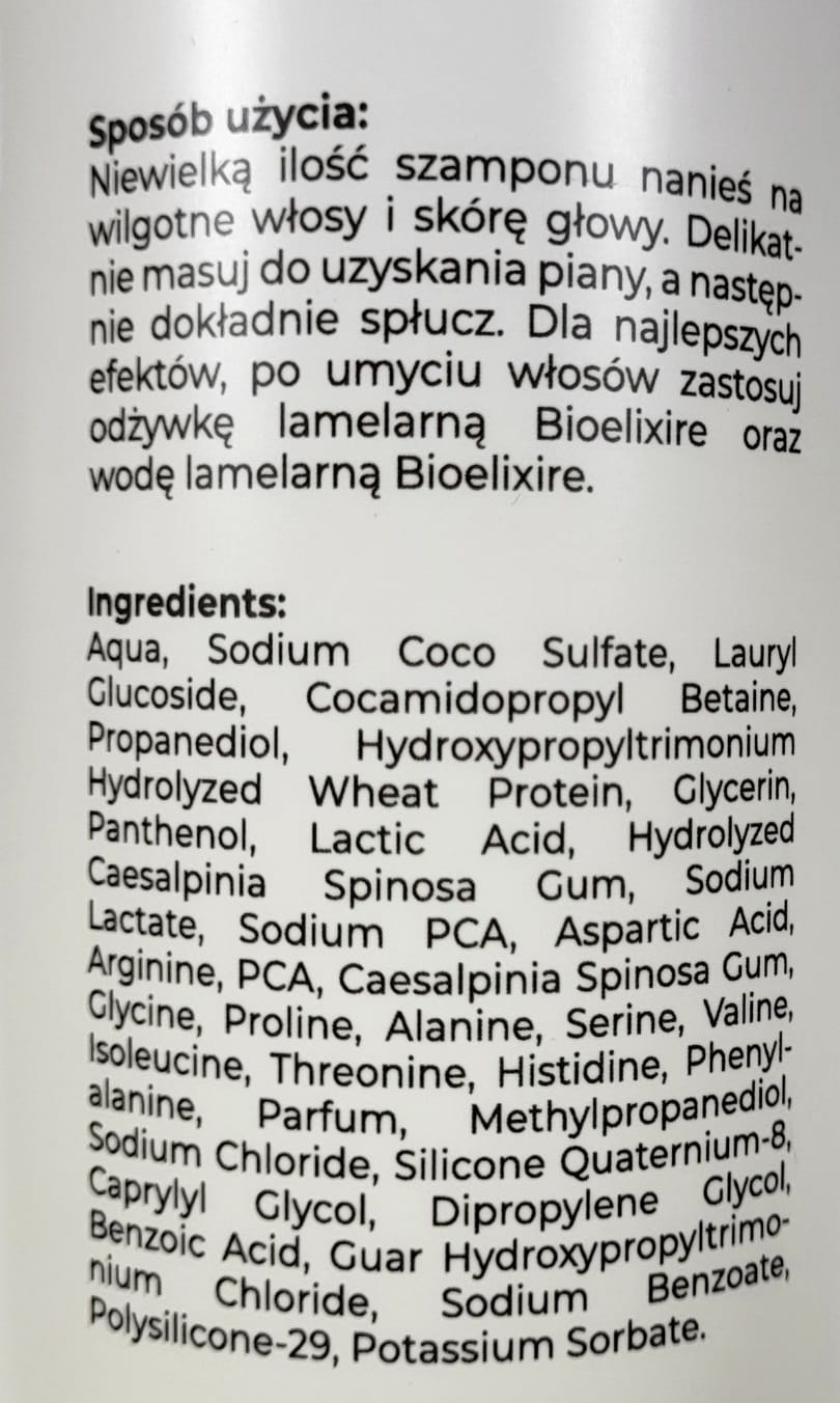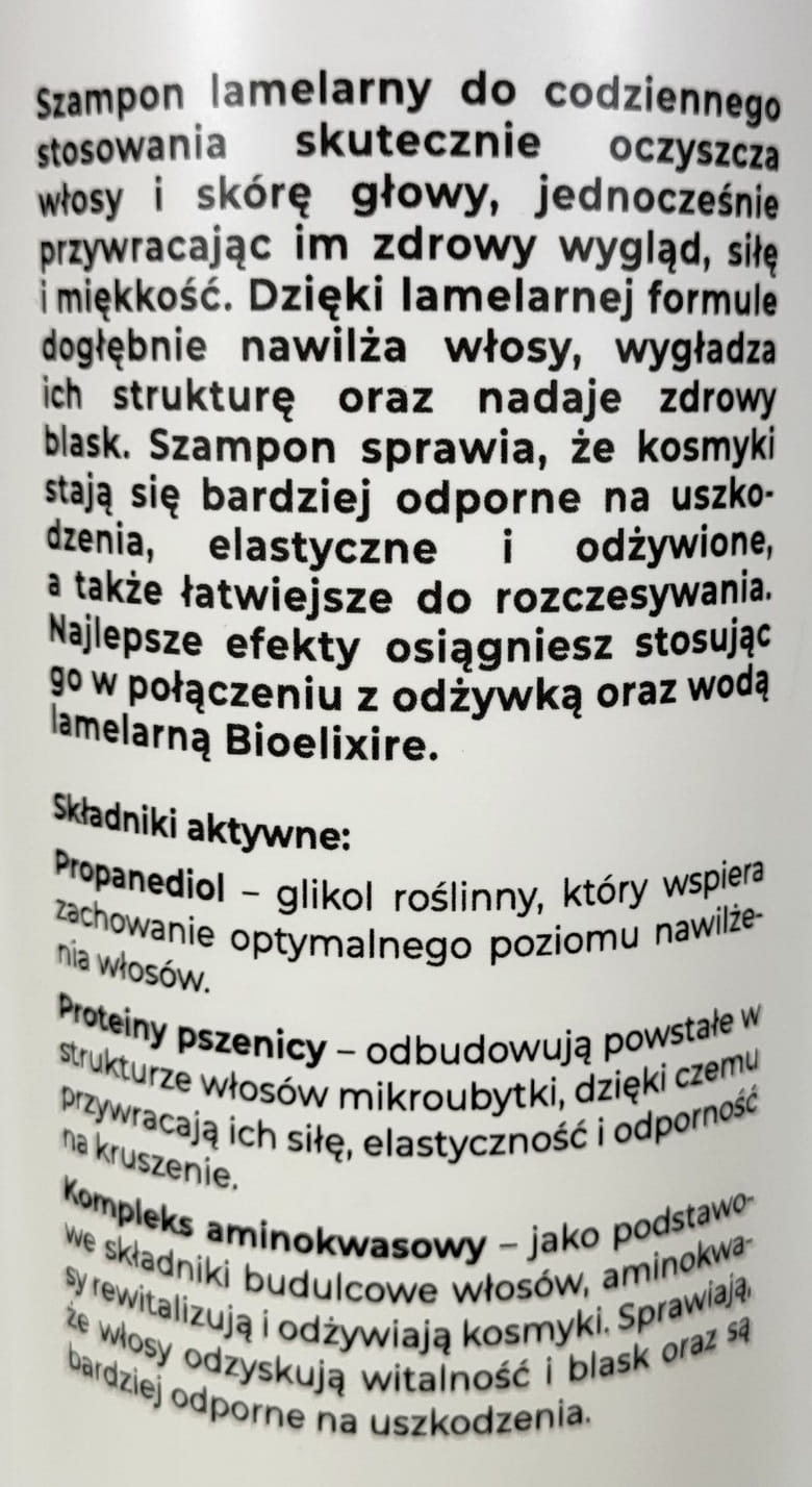 Bioelixire expert SZAMPON LAMELARNY zapobiega puszeniu się wygładzenie połysk miękkość sprężystość 500ml