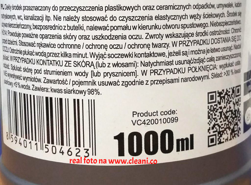 CLEAMEN 420 1L kwasowy udrażniacz odpływów sanitarnych WYŁĄCZNIE ODBIÓR OSOBISTY POZNAŃ