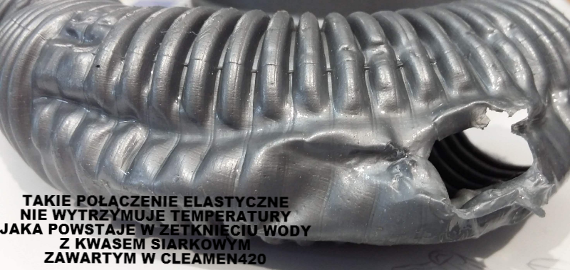 - Przy rurach PCV delikatnej konstrukcji (włoska armatura) zachować szczególną ostrożność badając wytworzoną temperaturę, która może naruszyć szczelność układu odpływowego. (patrz foto)