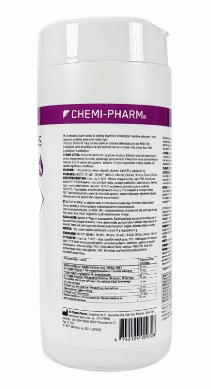 Chemi-Pharm BACTICID AF WIPES 100szt ZAPAS Chusteczki do szybkiej dezynfekcji wyrobów medycznych i powierzchni nasączone alkoholem