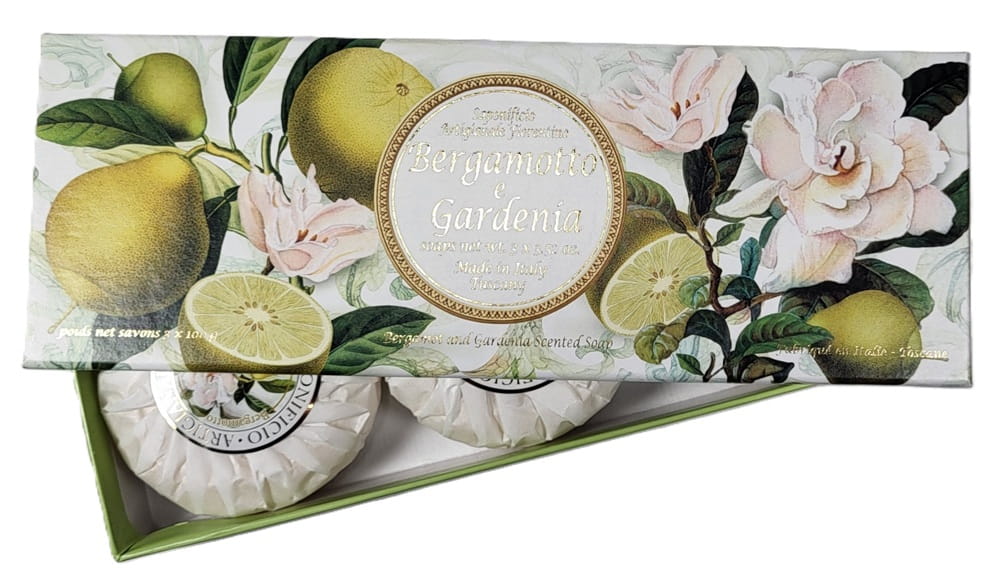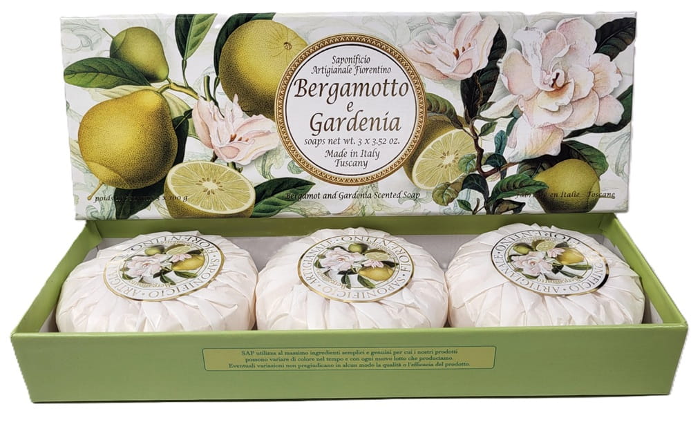 FIORENTINO włoskie mydło naturalne o zapachu BERGAMOTKI i GARDENII kostka 100g x3