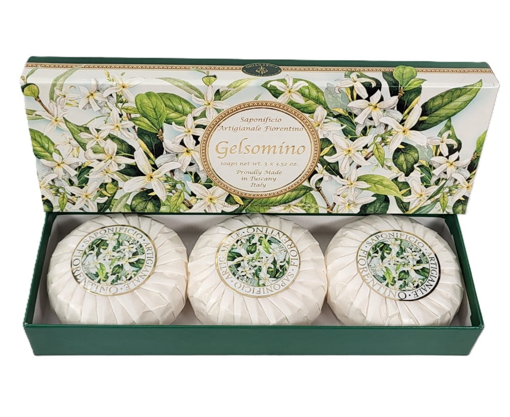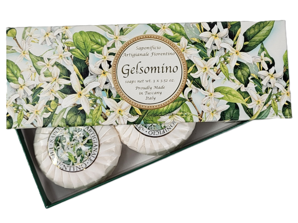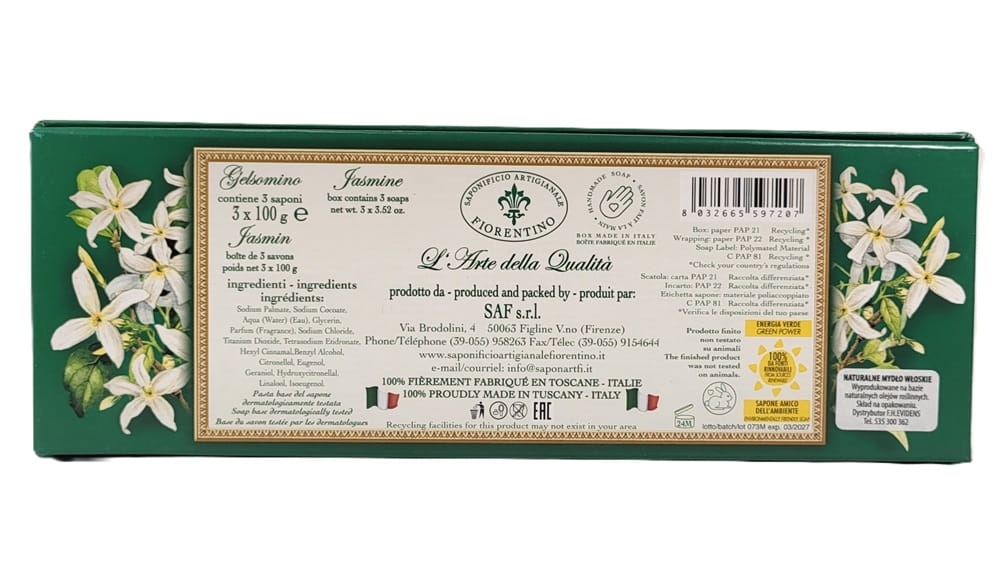 FIORENTINO włoskie mydło naturalne o zapachu JAŚMINU 3 kostki po 100g w ozdobnym pudełku