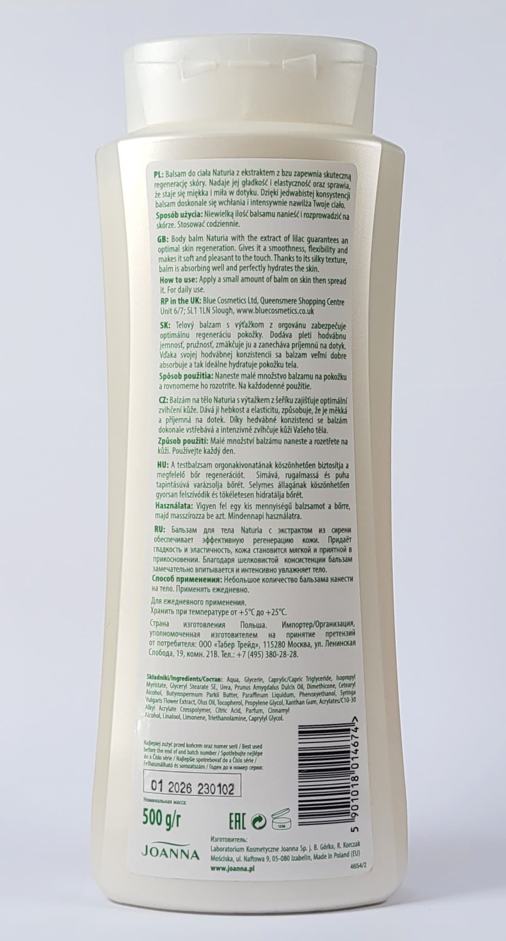 JOANNA naturia BEZ Regenerujący balsam do ciała z wyciągiem z bzu 500ml