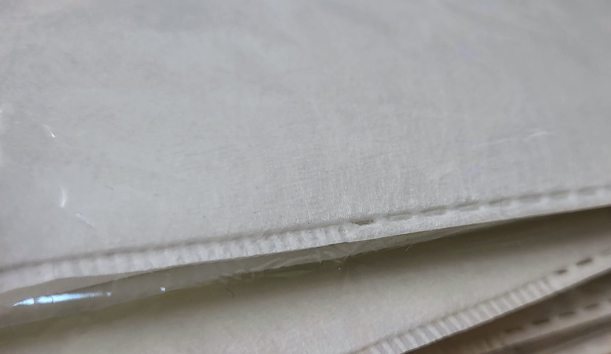 Kolor biały, obszyte białą lub kolorową nitką bądź zgrzewany i może różnić się w zależności od partii towaru