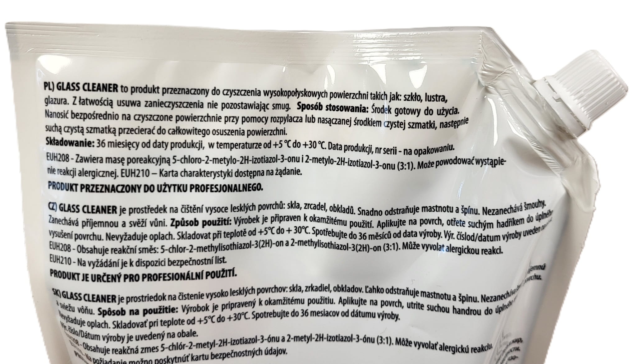 Płyn do mycia szyb i luster GLASS CLEANER 1L zapas (saszetka)