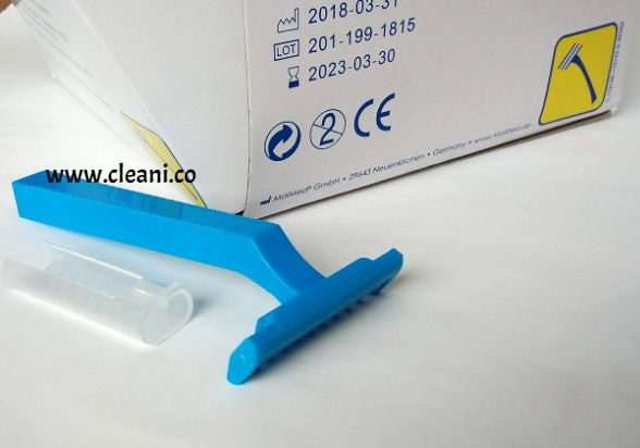 Medyczna maszynka do golenia jednorazowa, niejałowa z pojedynczym ostrzem.