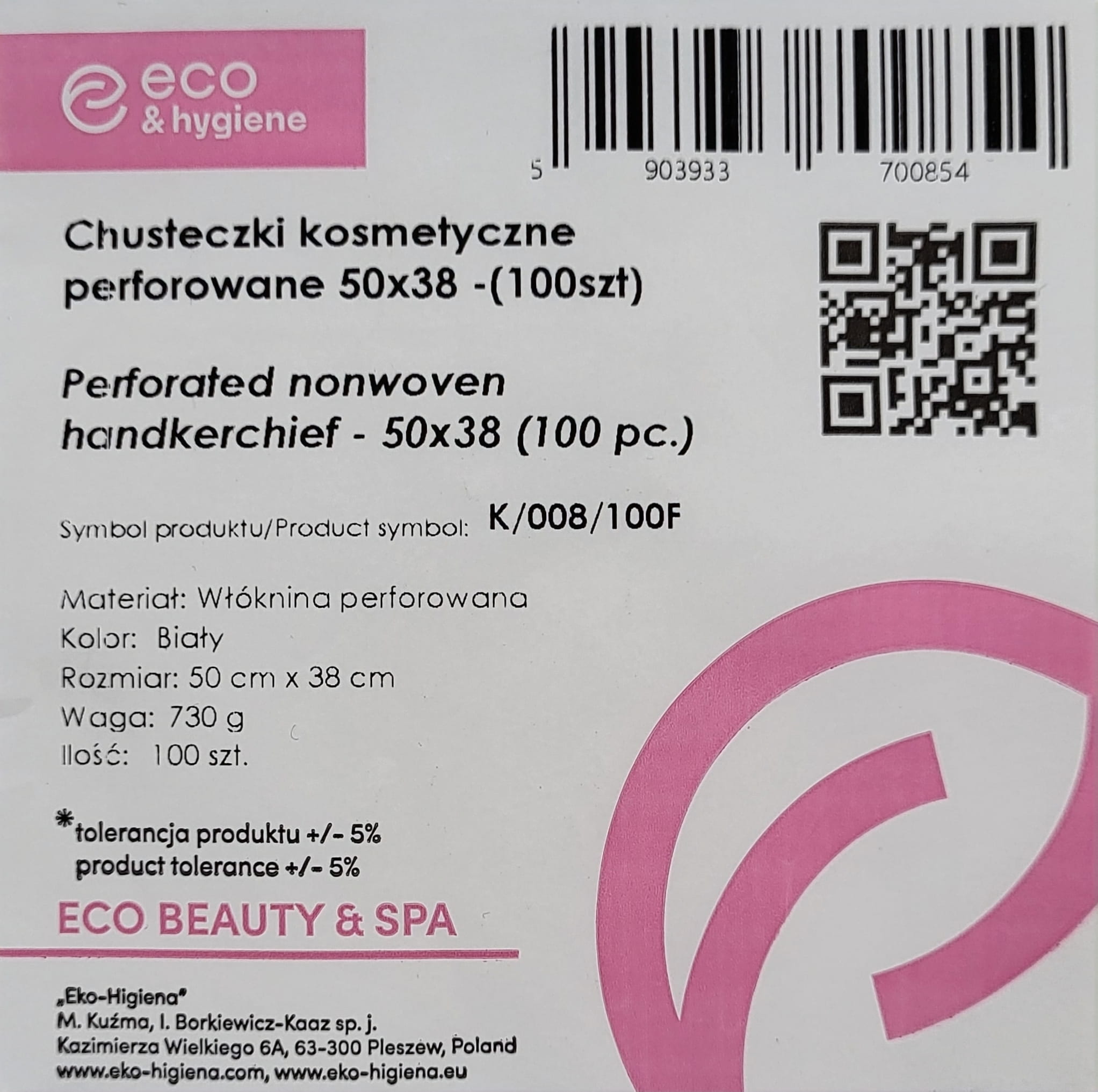Ręcznik włókninowy płaty 38x50cm a'100 delikatne perforowane chusteczki kosmetyczne zabiegowe