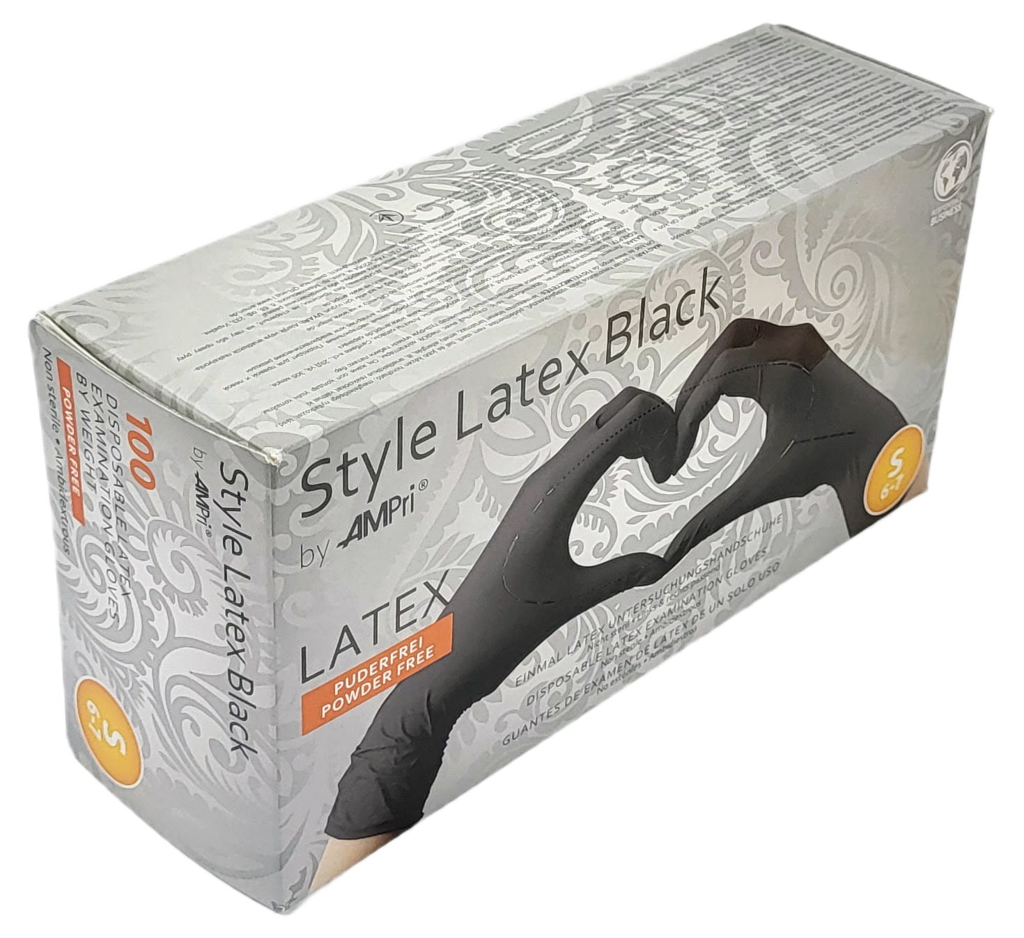 Rękawice lateksowe Czarne bezpudrowe AMPri Style LATEX BLACK b.mocne gładkie a'100 r. S