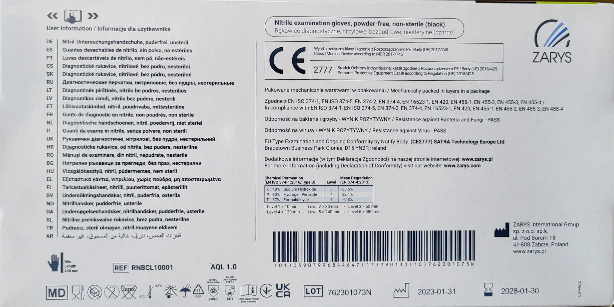 - norma wirusowa oraz odporności chemicznej EN 374, środek ochrony indywidualnej kat.III