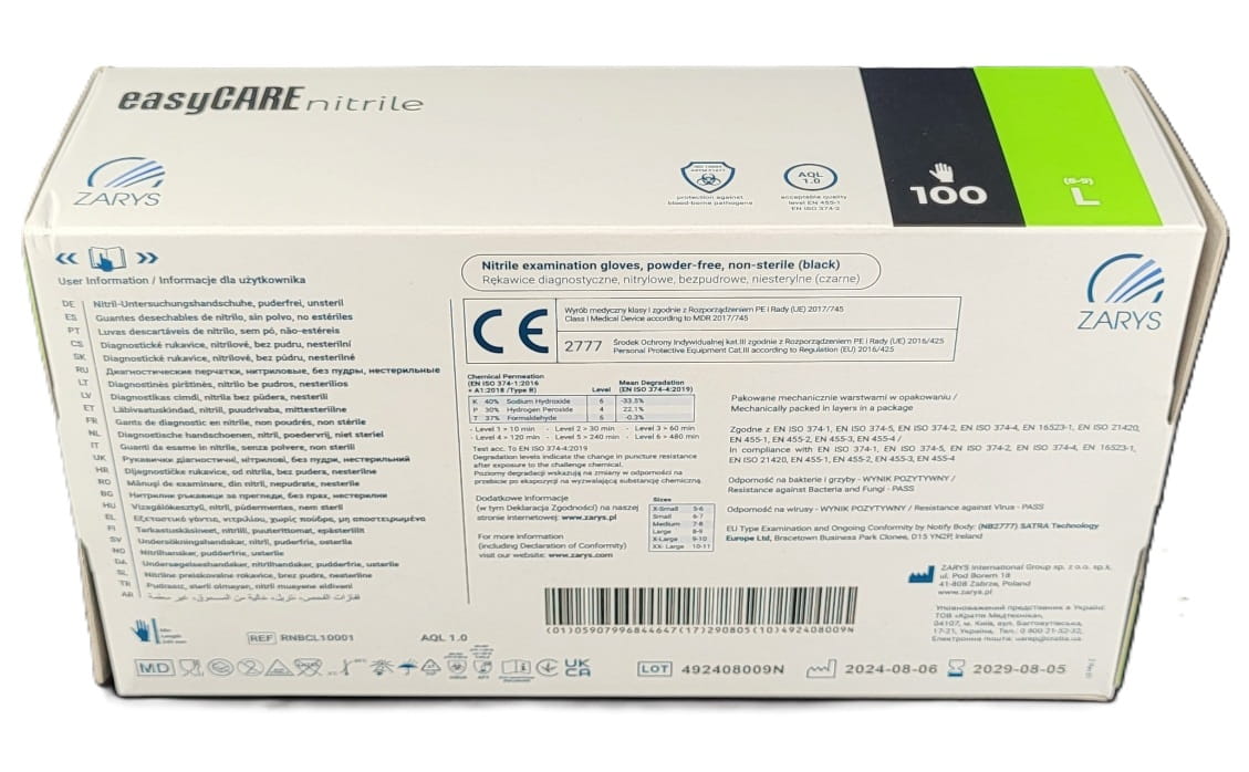 easyCARE nitrile black - rękawice diagnostyczne medyczne CZARNE 100szt rozmiar L