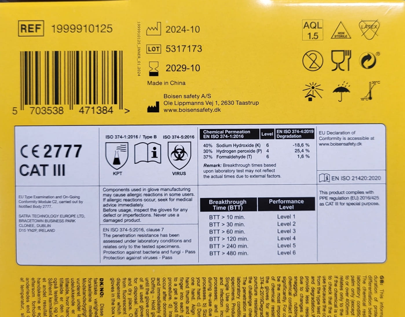 - norma wirusowa oraz odporności chemicznej EN 374, środek ochrony indywidualnej kat.III