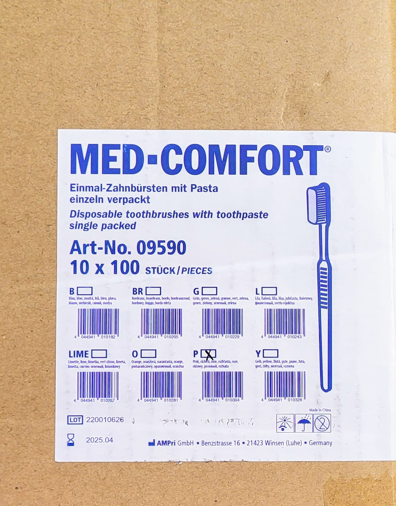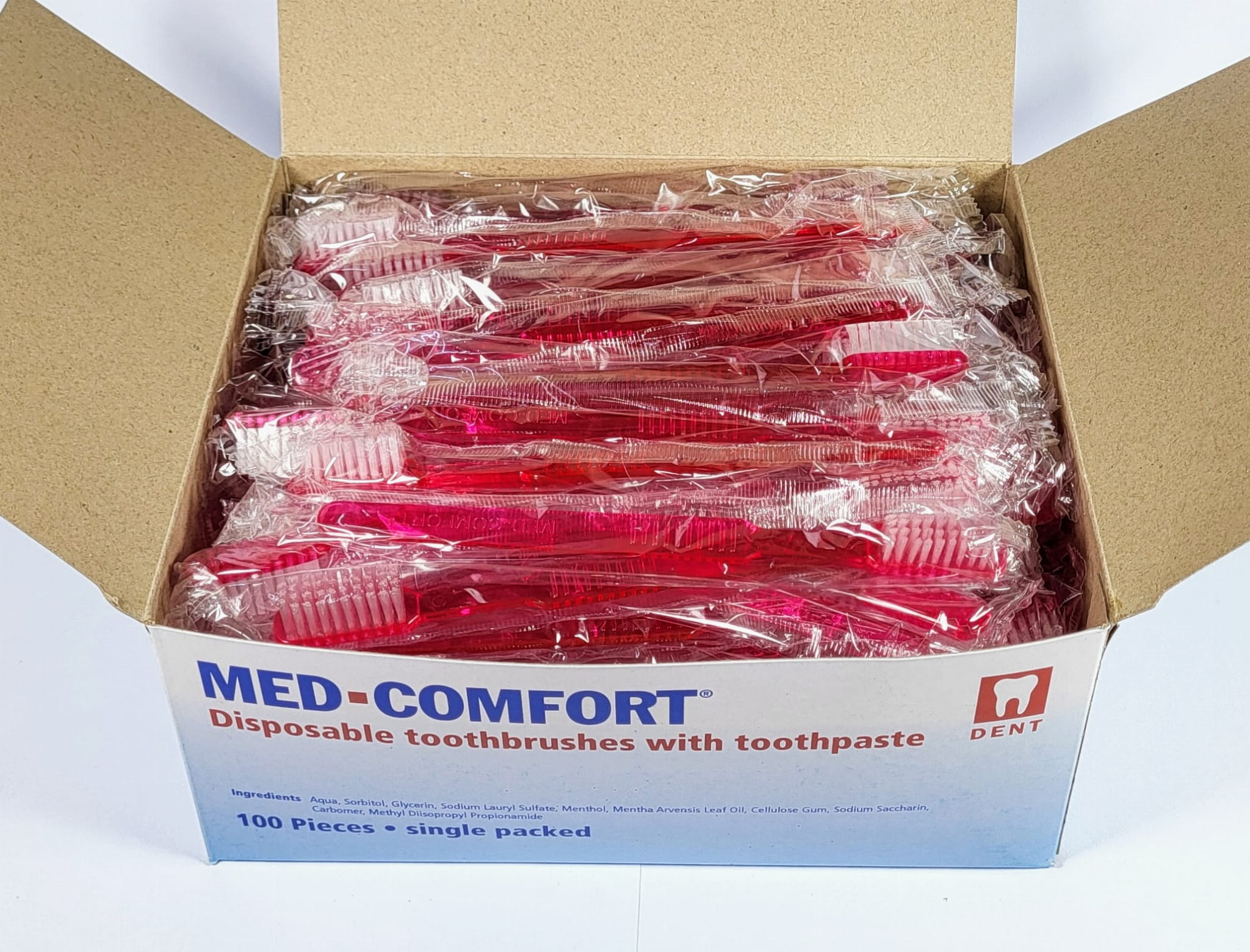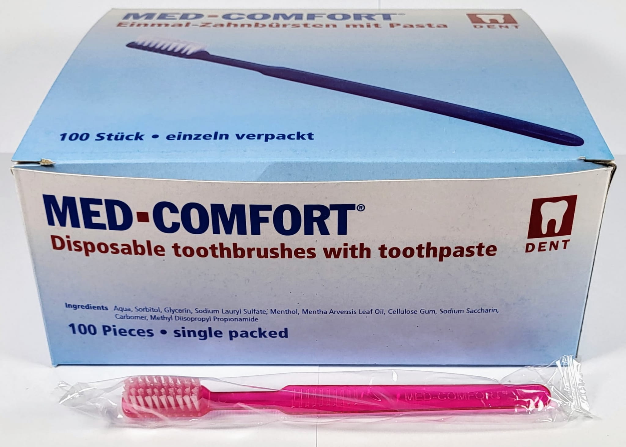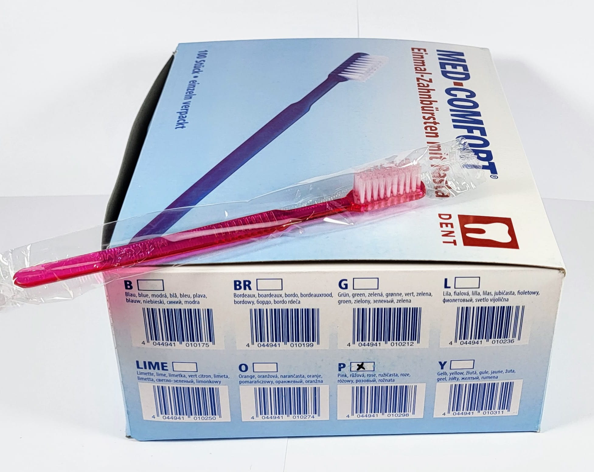 MED♦COMFORT DENT Jednorazowe RÓŻOWE szczoteczki do zębów z pastą 100szt