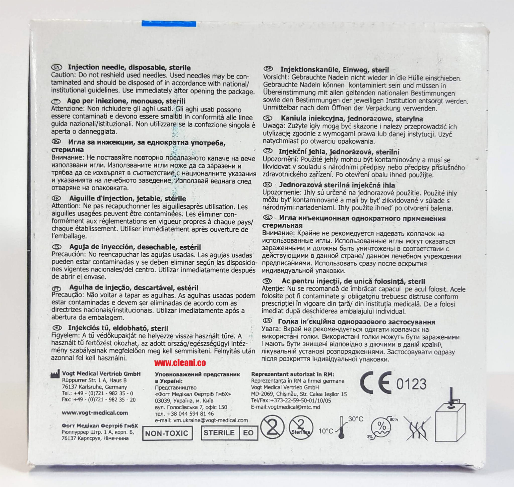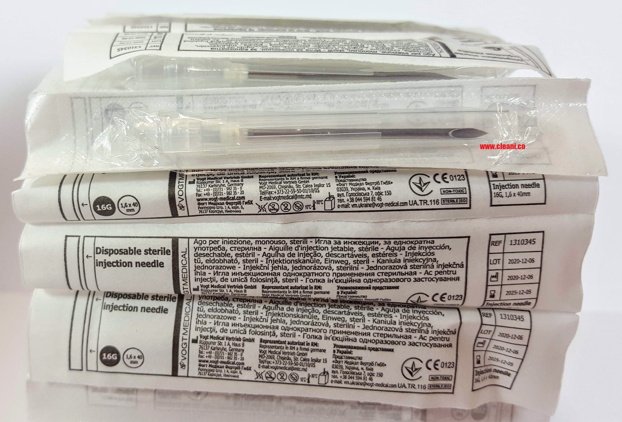 VOGT injection needle igła iniekcyjna 16G średn. ø 1,6 x 40mm (niebieskie) op.100szt