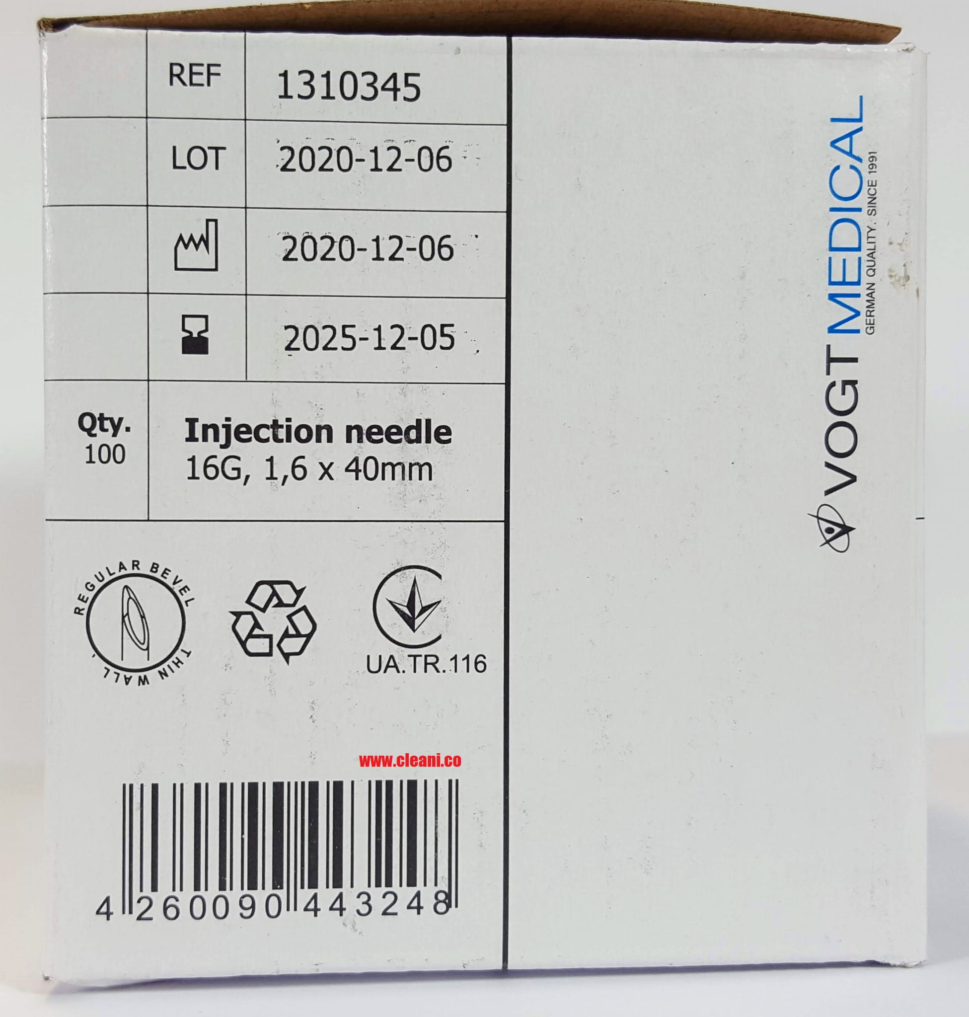 VOGT injection needle igła iniekcyjna 16G średn. ø 1,6 x 40mm (niebieskie) op.100szt.