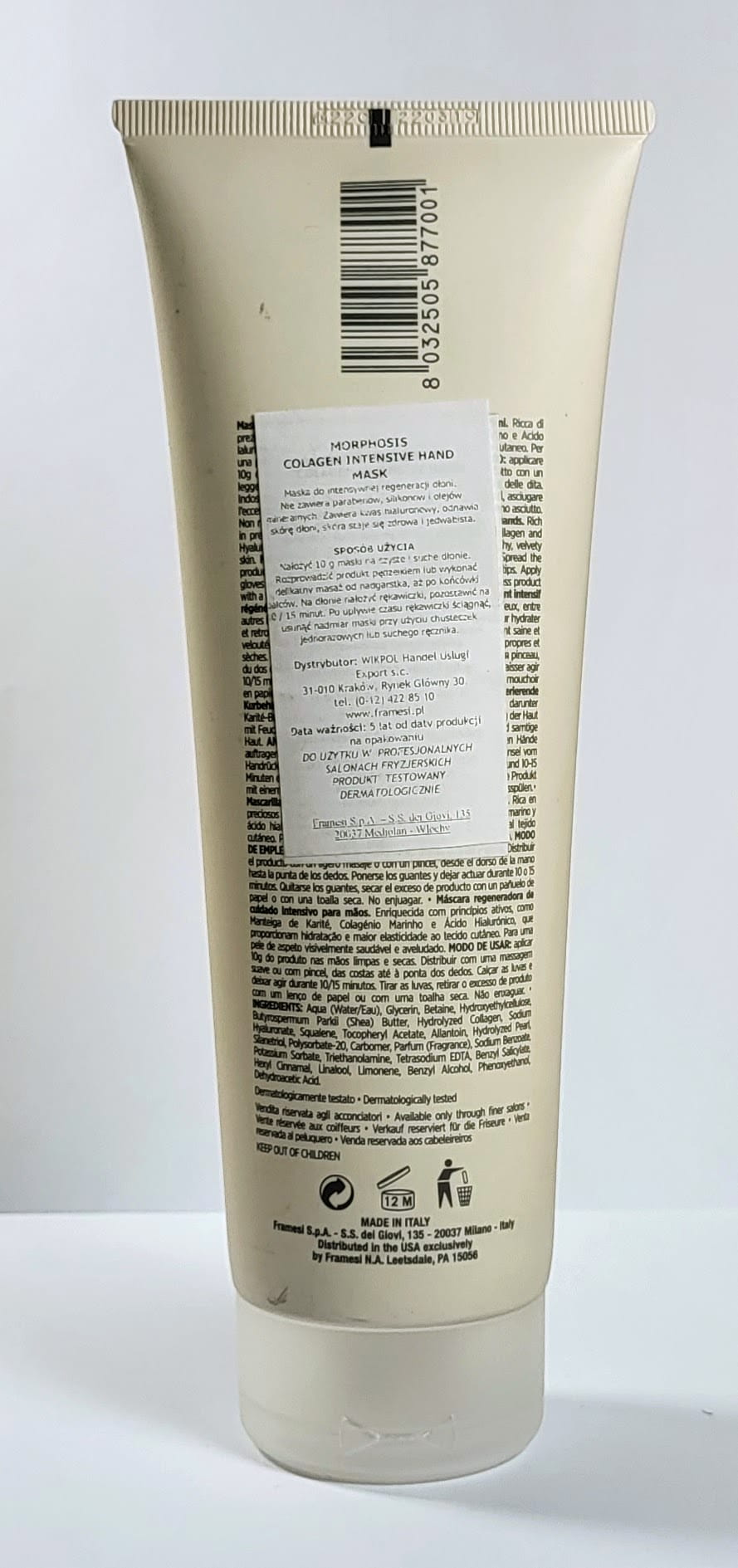 framesi MORPHOSIS Collagen Intensive Hand CREAM Krem regeneracyjny do rąk z kwasem hialuronowym 75ml