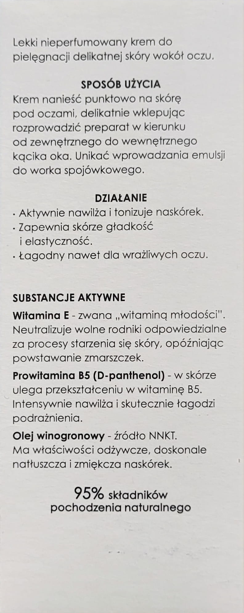 Lekki nieperfumowany krem do pielęgnacji delikatnej skóry wokół oczu.