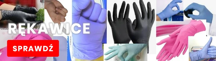 Hybrydowe, foliowe i inne – w zależności od przeznaczenia i wymogów środowiska pracy, chemoodporne, dopuszczone do kontaktu z żywnością, bawełniane.